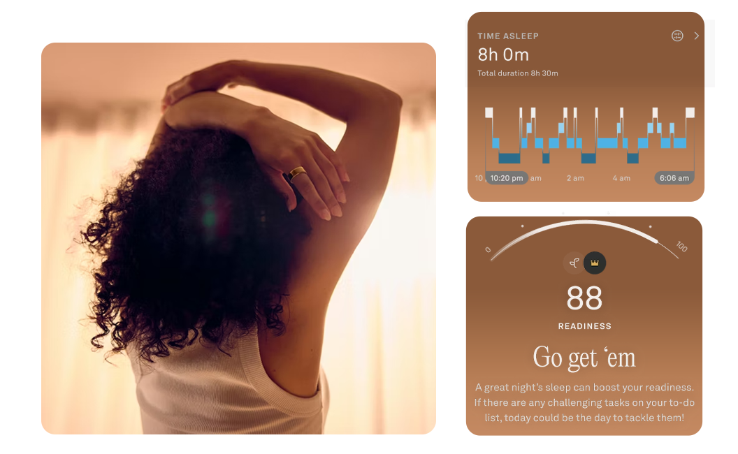 Better nights make for better days. With Oura, wake up to in-depth sleep analysis and deeper insight into your blood oxygen levels [SpO2] to improve your habits and transform how you feel all day long.